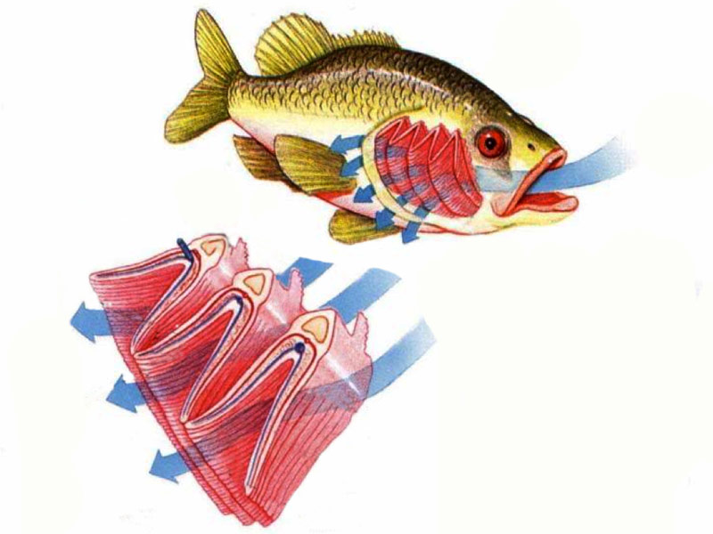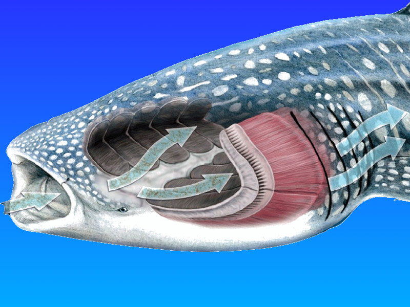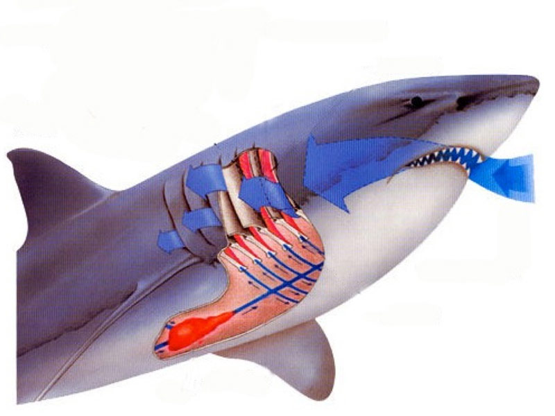 The way gills function among sharks is similar to bony fishes. Here as well, the oxygen carried by the water is absorbed through the gills. While the water flows around the gills, a special mechanism allows oxygen to be absorbed into the blood stream of the animal.