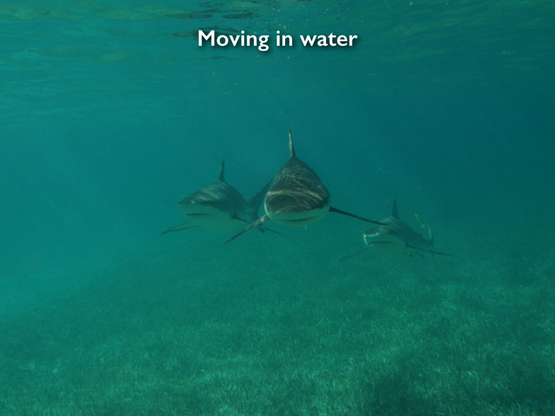 There are many studies dealing with a shark's locomotion. Generally speaking, there are two strategies of shark locomotion: they are either fast swimming and so find more food to compensate for the energy used due to the fast motion, or they swim very slowly, using less energy but due to the slow speed find less food as well.