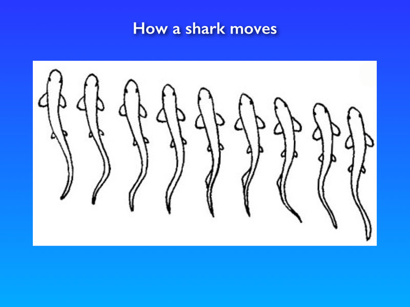 Locomotion happens through a continuous contraction of small muscle groups arranged along the flank. Contraction starts with the first segment (in the gill area) followed by the second one, the third one and so on... The results is an undulating motion.