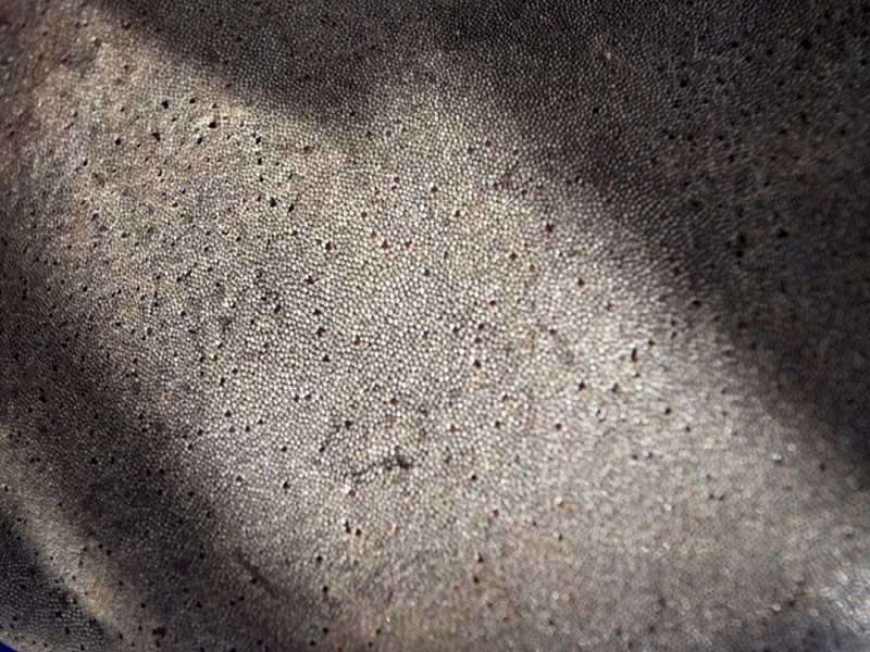A shark's kin consists of very small teeth which are built identical to the teeth in a shark's mouth, as well quite similar to the ones humans have. The tips of these small teeth that cover a shark's body, called placoid scales, point towards the tail hence why touching a shark when it passes feels very smooth but do so against its locomotion feels like sandpaper.